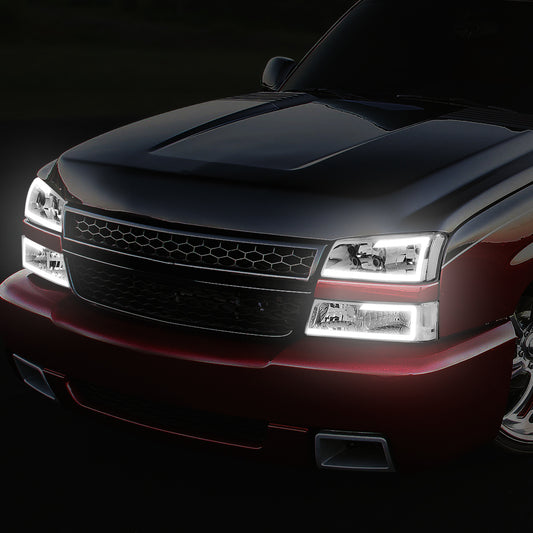 03-07 CHEVY SILVERADO AVALANCHE LED DRL HEADLIGHT & BUMPER LAMPS CHROME/CLEAR