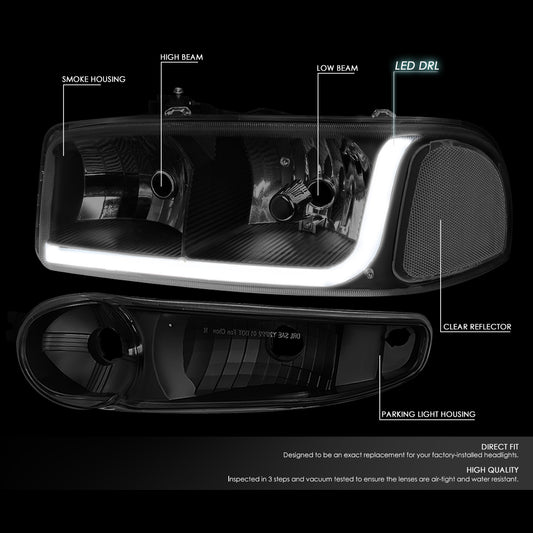 01-07 GMC SIERRA/YUKON DENALI LED DRL TINTED CLEAR HEADLIGHTS+BUMPER LAMPS
