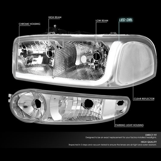 01-07 GMC SIERRA/YUKON DENALI LED DRL CHROME CLEAR HEADLIGHTS+BUMPER LAMPS