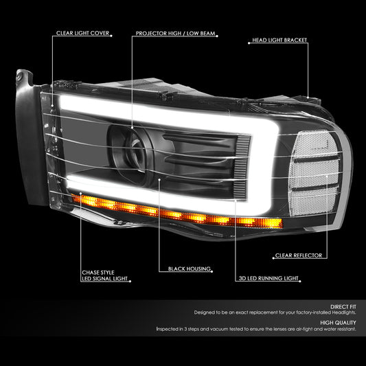 02-05 DODGE RAM BLACK SEQUENTIAL TURN SIGNAL PROJECTOR HEADLIGHTS