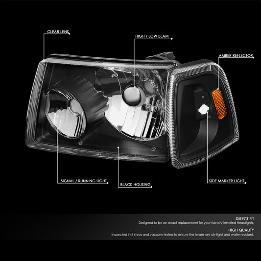 03-06 Chevy Silverado Avalanche Headlight Bumper Signal Lamps Black/Clear