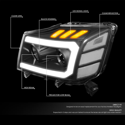 04-15 NISSAN TITAN ARMADA U-LED DRL SIGNAL PROJECTOR HEADLIGHTS BLACK/CLEAR