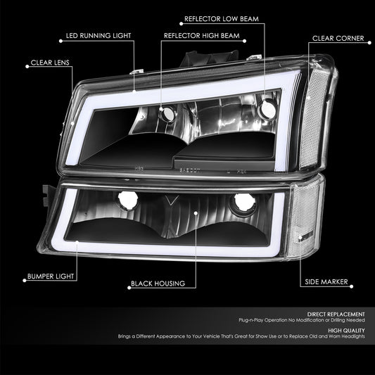 03-07 Silverado Avalanche Truck Headlights & Bumper Lamps Black