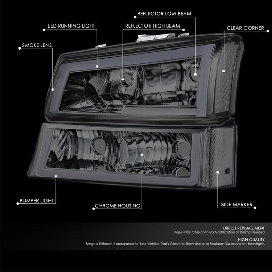 03-07 Silverado Avalanche Truck Headlights & Bumper Lamps Smoked