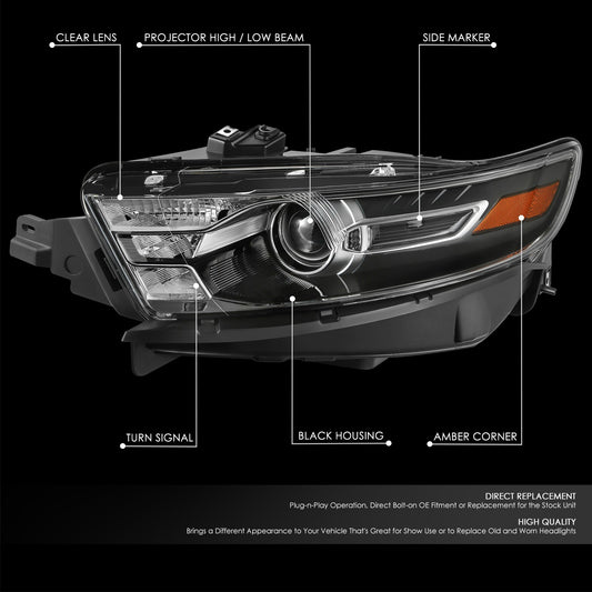 13-19 Ford Taurus Black/Amber OE Style Projector Headlights Headlamps Pair