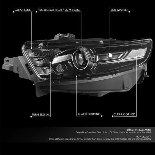 13-19 Ford Taurus Black/Clear OE Style Projector Headlights Headlamps Pair