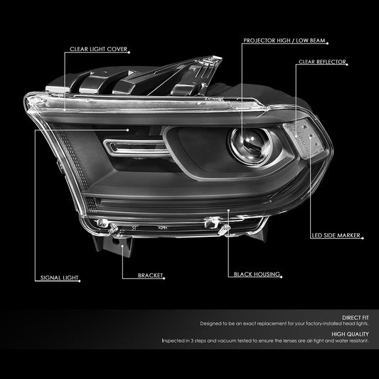 14-20 DODGE DURANGO BLACK HOUSING CLEAR CORNER PROJECTOR HEADLIGHT HEAD LAMP