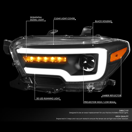 16-20 TACOMA BLACK AMBER PROJECTOR HEADLIGHTS SEQUENTIAL SIGNAL LED DRL
