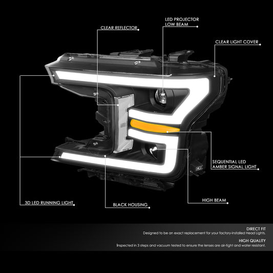 18-20 FORD F-150 BLACK CLEAR PROJECTOR HEADLIGHTS