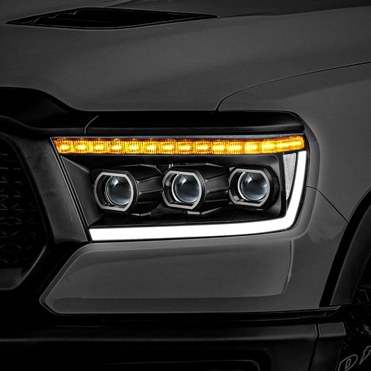19-24 Ram 1500 Animated Start-Up Sequential LED Projector Headlights Black