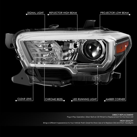 16-23 Toyota Tacoma Chrome Bezel Amber Corner Projector Headlights