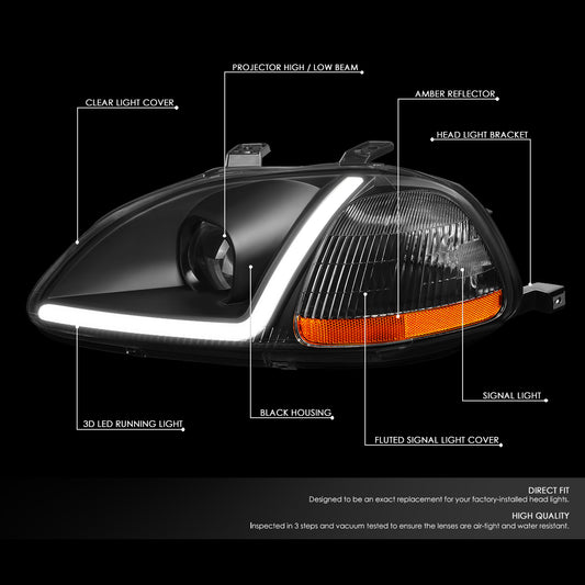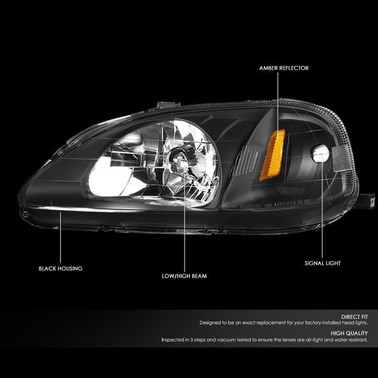 96-98 HONDA CIVIC BLACK HOUSING AMBER CORNER PROJECTOR HEADLIGHTS