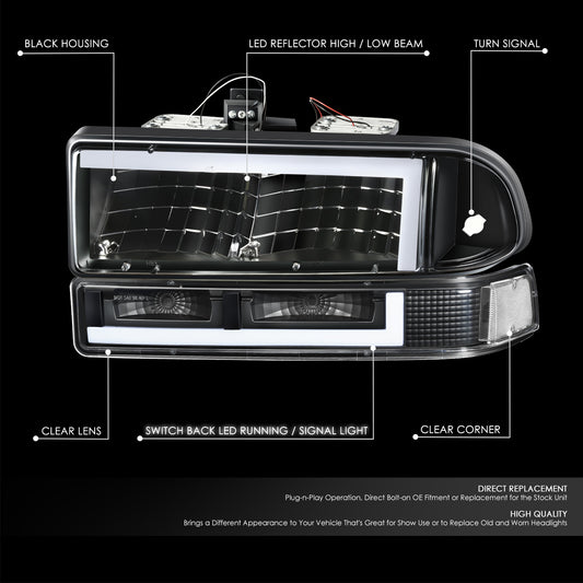 98-04 Chevy Blazer S10 Headlights Black/Clear Switchback L-LED DRL Signal
