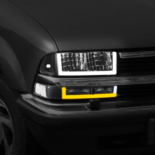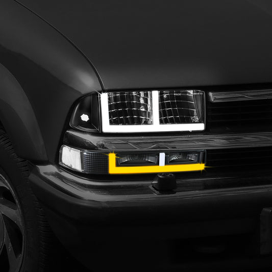 98-04 Chevy Blazer S10 Headlights Black/Clear Switchback DRLSignal