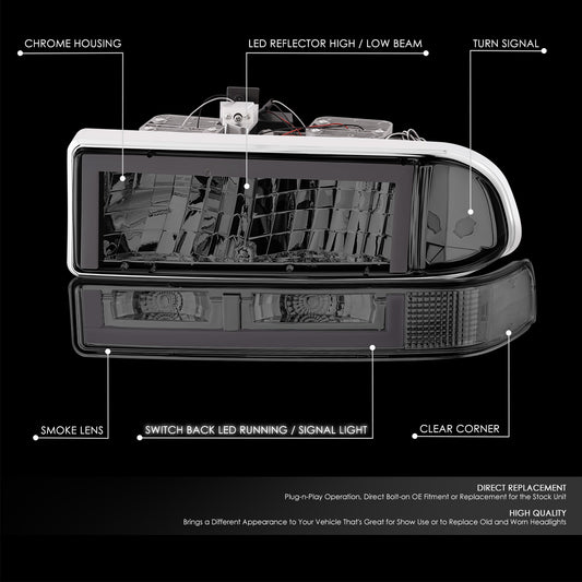 98-04 Chevy Blazer S10 Headlights Smoked/Clear Switchback Dual LED DRL