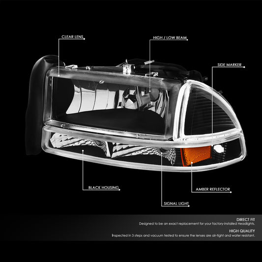 98-04 CHEVY S10 PICKUP BLAZER BLACK/CLEAR CORNER HEADLIGHT BUMPER HEAD LAMP