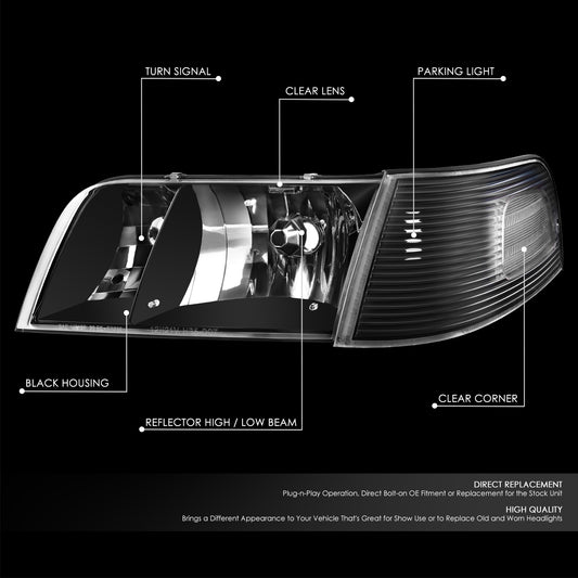 98-11 Ford Crown Victoria Black Housing Headlight Clear Corner Signal Lamps