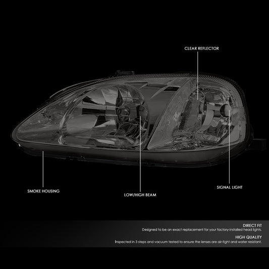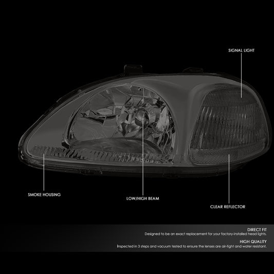 96-98 HONDA CIVIC EJ/EM/EK SMOKED LENS CLEAR CORNER SIGNAL HEADLIGHT LAMPS