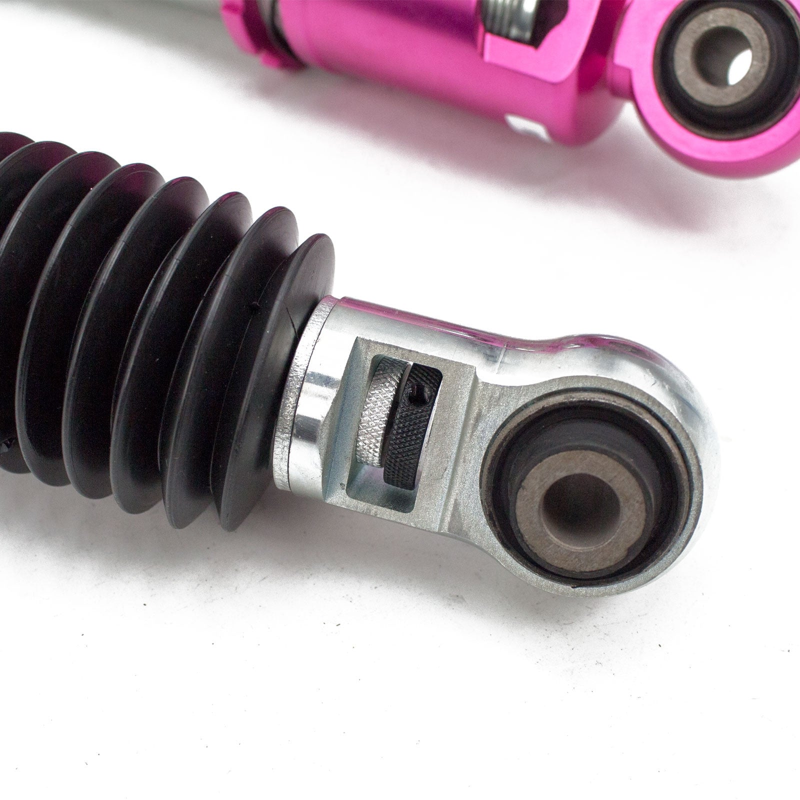 Godspeed Project's MonoSS is our one entity in our family of single-adjustable coilover suspension kits. These coilovers are designed to be a streetable race built coilover at an affordable price. It features a monotube damper that is made out of a carbon seamless steel 52mm tube with a performance internal piston providing maximum damper response. The cold-bent springs are made from high strength SAE9252 steel to optimize the balance between performance and comfort. Using race quality shock oil, Godspeed Project can guarantee exceptional damper performance at any temperature on and off the track. The top of the shock is attached to the car using a high quality top hat that features a high performance Japanese KOYO 6204Z bearing pillow ball mount (when applicable). The bottom shock brackets are made out of a T7075 forged aluminum or carbon steel brackets for lighter weight without sacrificing durability which also includes brake line brackets (when applicable). The MonoSS offers 16 level of damper adjust ability which can be set to your preference.