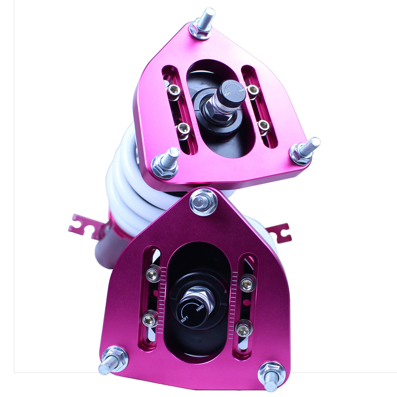 Affordable priced coilover damper kit features 16 levels of damping adjustment, full length adjustable, and aluminum parts.