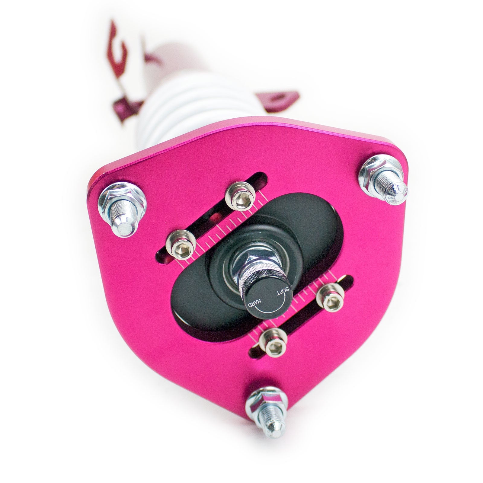 Godspeed Project's MonoSS is our one entity in our family of single-adjustable coilover suspension kits. These coilovers are designed to be a streetable race built coilover at an affordable price. It features a monotube damper that is made out of a carbon seamless steel 52mm tube with a performance internal piston providing maximum damper response. The cold-bent springs are made from high strength SAE9252 steel to optimize the balance between performance and comfort. Using race quality shock oil, Godspeed Project can guarantee exceptional damper performance at any temperature on and off the track. The top of the shock is attached to the car using a high quality top hat that features a high performance Japanese KOYO 6204Z bearing pillow ball mount (when applicable). The bottom shock brackets are made out of a T7075 forged aluminum or carbon steel brackets for lighter weight without sacrificing durability which also includes brake line brackets (when applicable). The MonoSS offers 16 level of damper adjustability which can be set to your preference.