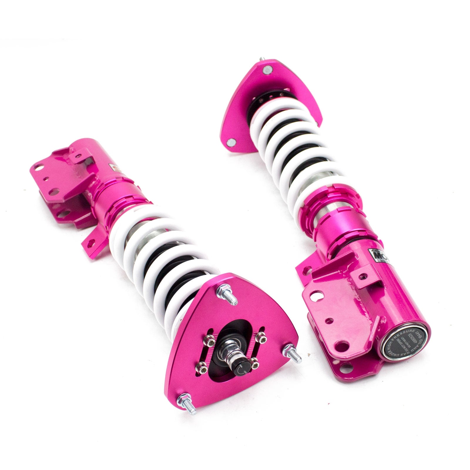 Godspeed Project's MonoSS is our one entity in our family of single-adjustable coilover suspension kits. These coilovers are designed to be a streetable race built coilover at an affordable price. It features a monotube damper that is made out of a carbon seamless steel 52mm tube with a performance internal piston providing maximum damper response. The cold-bent springs are made from high strength SAE9252 steel to optimize the balance between performance and comfort. Using race quality shock oil, Godspeed Project can guarantee exceptional damper performance at any temperature on and off the track. The top of the shock is attached to the car using a high quality top hat that features a high performance Japanese KOYO 6204Z bearing pillow ball mount (when applicable). The bottom shock brackets are made out of a T7075 forged aluminum or carbon steel brackets for lighter weight without sacrificing durability which also includes brake line brackets (when applicable). The MonoSS offers 16 level of damper adjust ability which can be set to your preference.