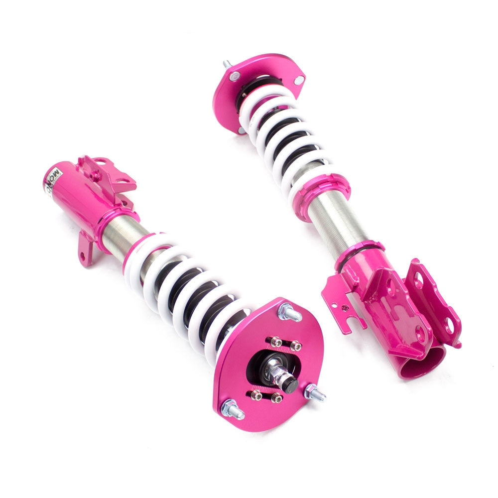 Godspeed Project's MonoSS is our one entity in our family of single-adjustable coilover suspension kits. These coilovers are designed to be a streetable race built coilover at an affordable price. It features a monotube damper that is made out of a carbon seamless steel 52mm tube with a performance internal piston providing maximum damper response. The cold-bent springs are made from high strength SAE9252 steel to optimize the balance between performance and comfort. Using race quality shock oil, Godspeed Project can guarantee exceptional damper performance at any temperature on and off the track. The top of the shock is attached to the car using a high quality top hat that features a high performance Japanese KOYO 6204Z bearing pillow ball mount (when applicable). The bottom shock brackets are made out of a T7075 forged aluminum or carbon steel brackets for lighter weight without sacrificing durability which also includes brake line brackets (when applicable). The MonoSS offers 16 level of damper adjustability which can be set to your preference.