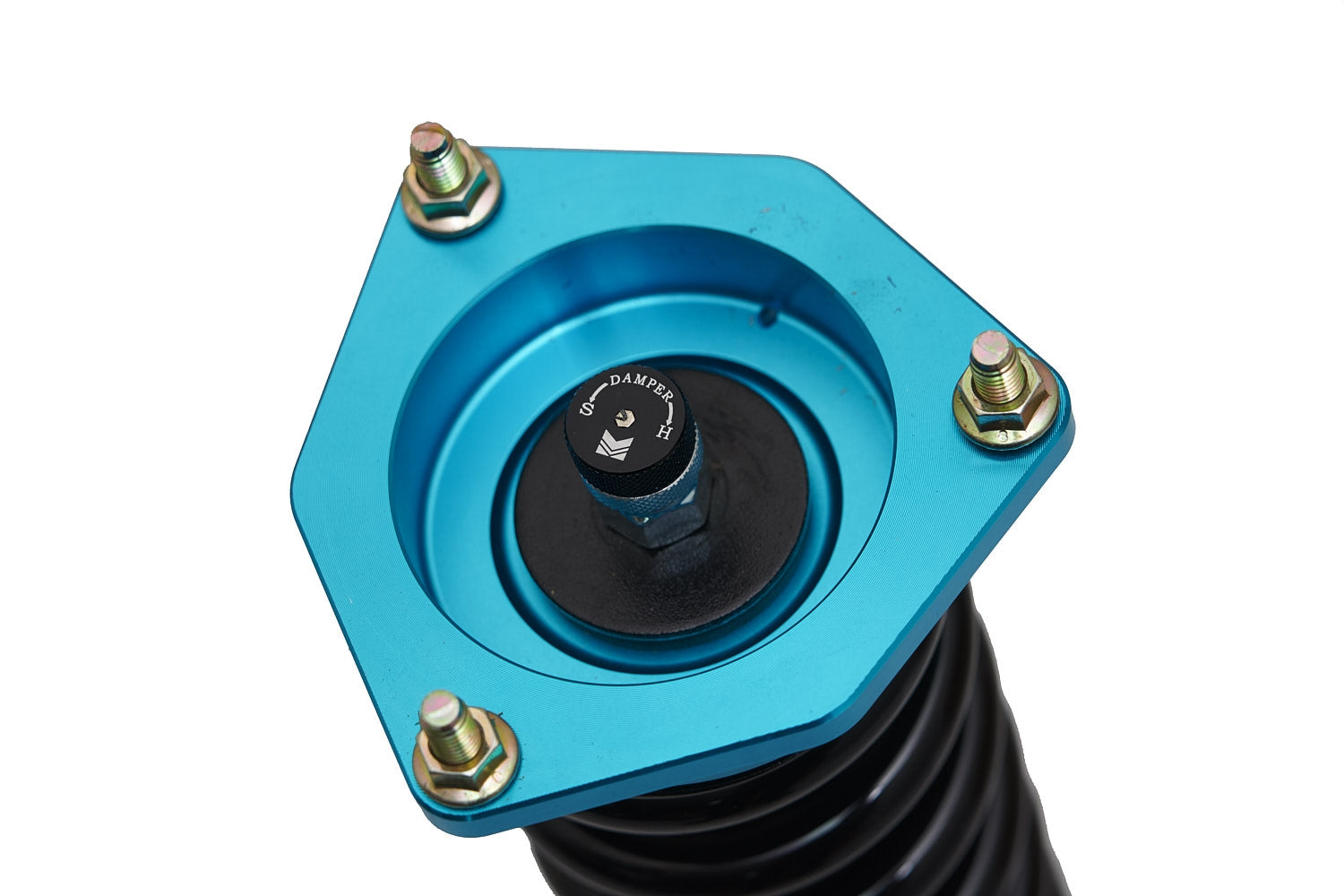 Featuring monotube internal construction and 32-way simultaneous compression and rebound adjustability, the kit allows drivers to fine-tune suspension stiffness to their exact preference. Full-length ride height adjustment preserves full suspension stroke while CNC-machined locking spring perches ensure smooth, precise height changes. Front damper adjustment knobs allow easy tuning on the fly, whether you are on the street or pushing your car on track day.