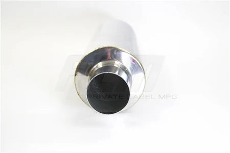 PLM Private Label Mfg. Power Driven universal rolled tip mufflers are manufactured from stainless steel and hand tig welded.
