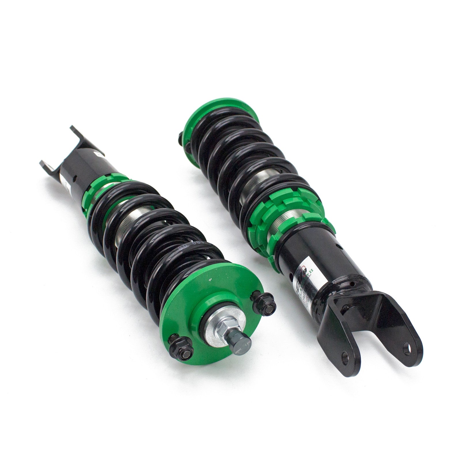 Hyper-Street II coilover suspension upgrade features mono-tube shocks with 32 clicks rebound settings and full length adjustable. Mono-tube shocks provides larger capacity for gas and oil to improve comfortable level of typical lowering vehicle. Special 32 clicks of valving allows user to fine tune rebound force settings. Independent spring tension and full length adjustable allows drop without sacrifice comfort by shorten pitch distance.