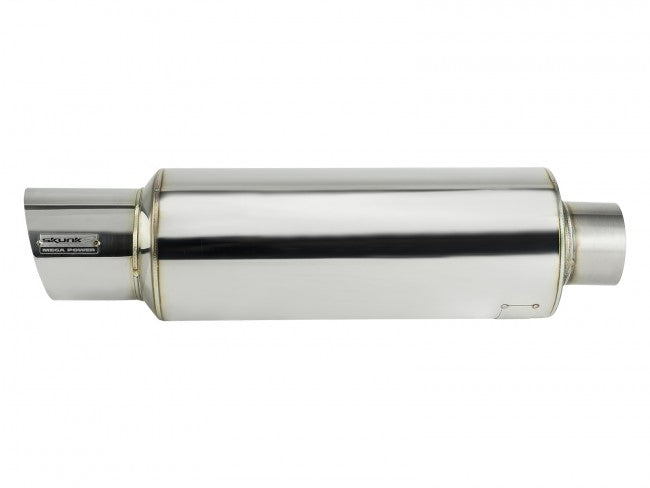 The J-Spec universal muffler is manufactured of T-304 stainless steel, robotically TIG welded for precise fitment, and features a large, 6.5-inch x 22-inch canister w/ a 5.25" long tip. Universal Mufflers can be fabricated to most OEM, aftermarket, or custom-built exhaust systems. Skunk2’s Japanese-spec, Super N1-style, low-restriction mufflers feature fully polished, over-sized exhaust tips, each with their own acid-etched Mega Power badge and serialized nameplate.
